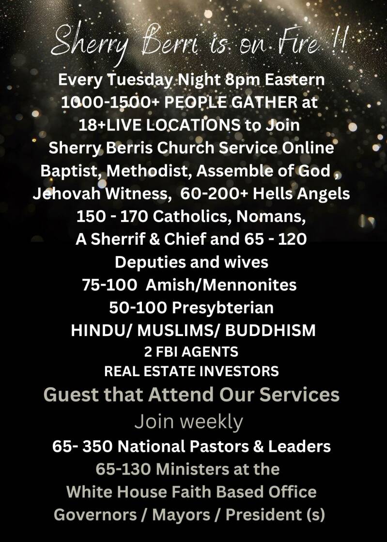 To hear about the Supernatural Encounters with God Sherry Berri has experienced read the INTRODUCTION on this page and scroll down past her introduction and you will find exact details concerning some of THE ENCOUNTERS SHERRY BERRI PROCLAIMS she has had with GOD.